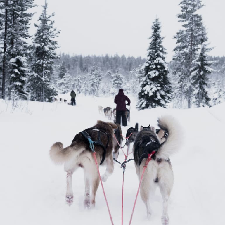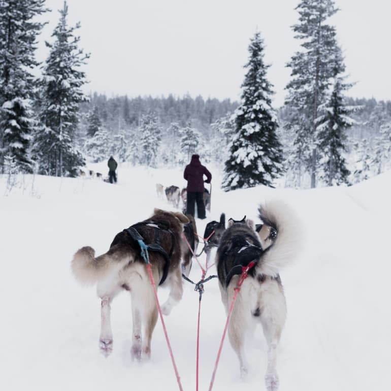 핀란드 개썰매(Dog Sledding in Finland)는 겨울철 라플란드 지역에서 즐길 수 있는 대표적인 체험 중 하나로, 하얀 설원 위를 시속 20~30km로 달리는 썰매를 타며 라플란드의 대자연을 만끽할 수 있는 액티비티입니다.
