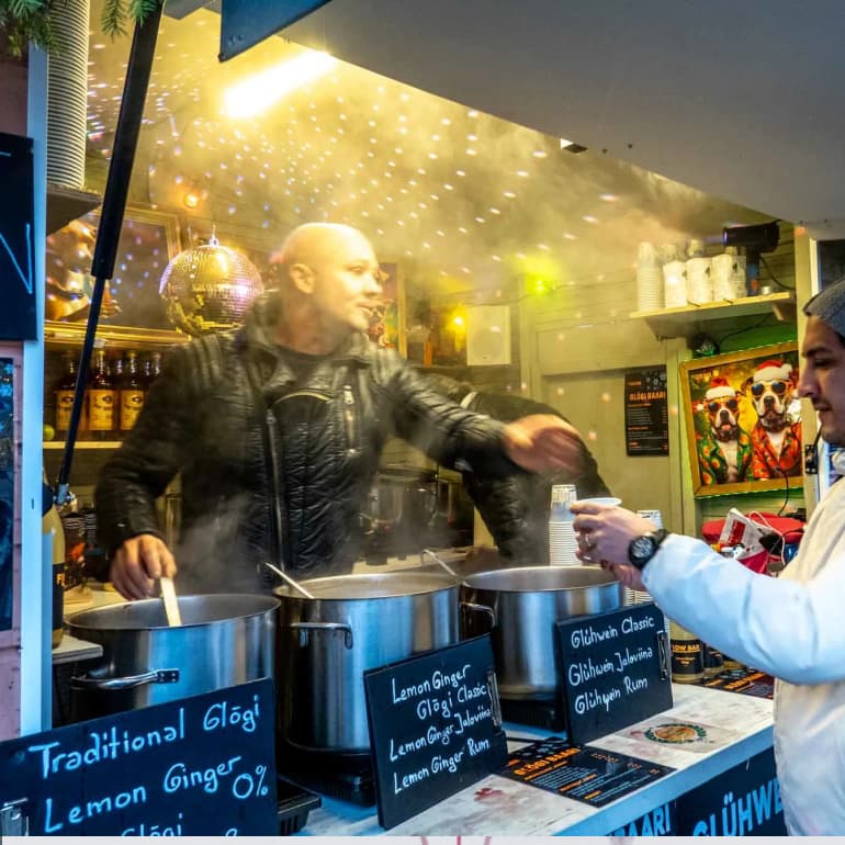 11월 말부터 12월 중순까지 약 한 달간 열리며, (❗12/14,15 출발팀까지 참석 가능합니다.) 전통 핀란드식 장식품·수공예품·글뤼바인(따뜻한 와인)·시나몬 향이 가득한 베이커리 등 북유럽식 크리스마스 분위기와 현지 라이프 스타일을 함께 즐길 수 있는 마켓입니다.