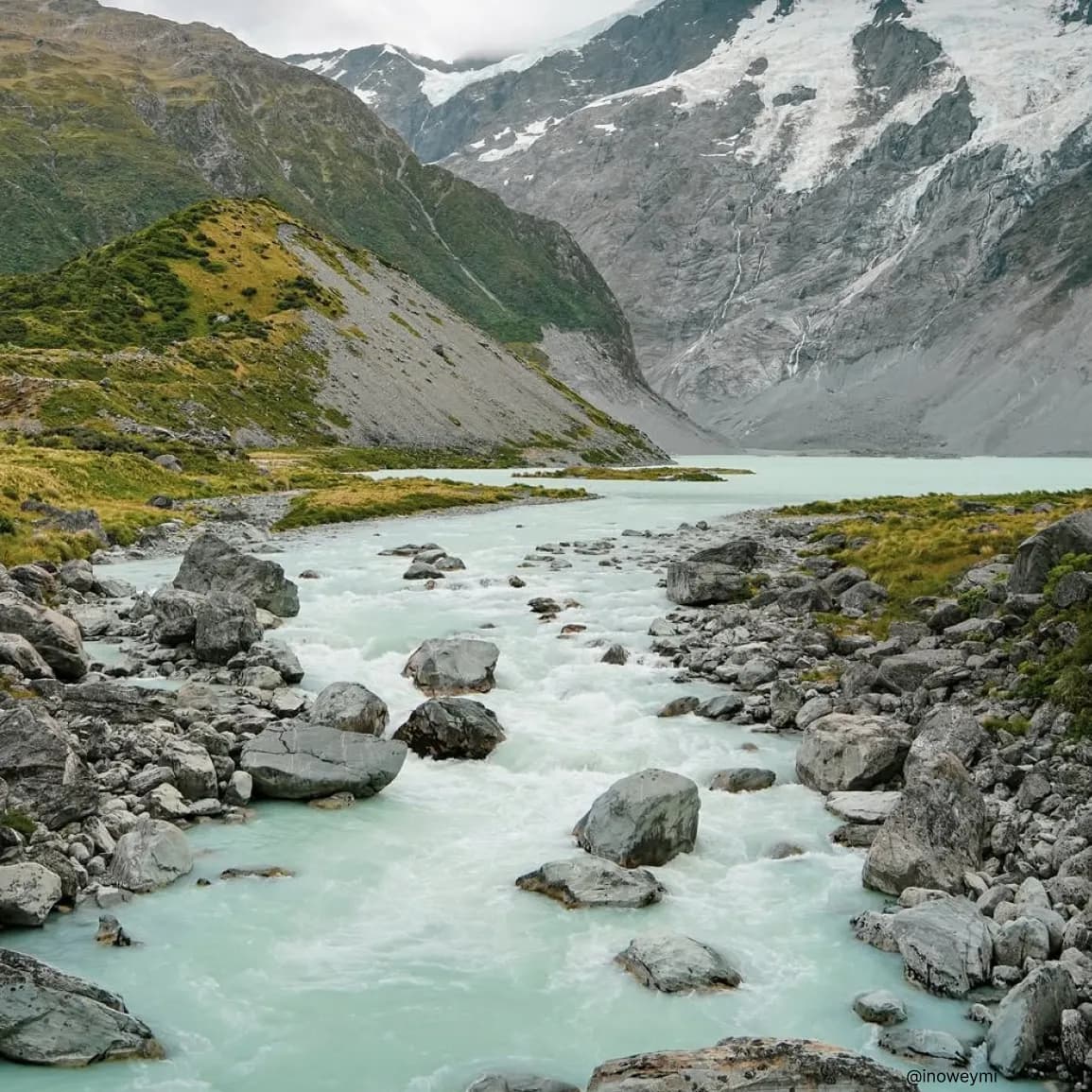 후커밸리 트레킹(Hooker Valley Track)은 뉴질랜드 남섬 마운트쿡 국립공원(Mount Cook National Park) 의 대표적인 하이킹 코스로, 남알프스의 절경을 가장 가까이에서 감상할 수 있는 트레일입니다. 총 왕복 약 10km(3시간 반~4시간) 정도로 완만하고 잘 정비되어 있어 초보자도 부담 없이 걸을 수 있으며, 코스 중간에는 세 개의 흔들다리(Swing Bridge)와 빙하호(Hooker Lake), 그리고 마운트쿡(Aoraki) 정상의 장대한 설산 뷰가 펼쳐집니다.